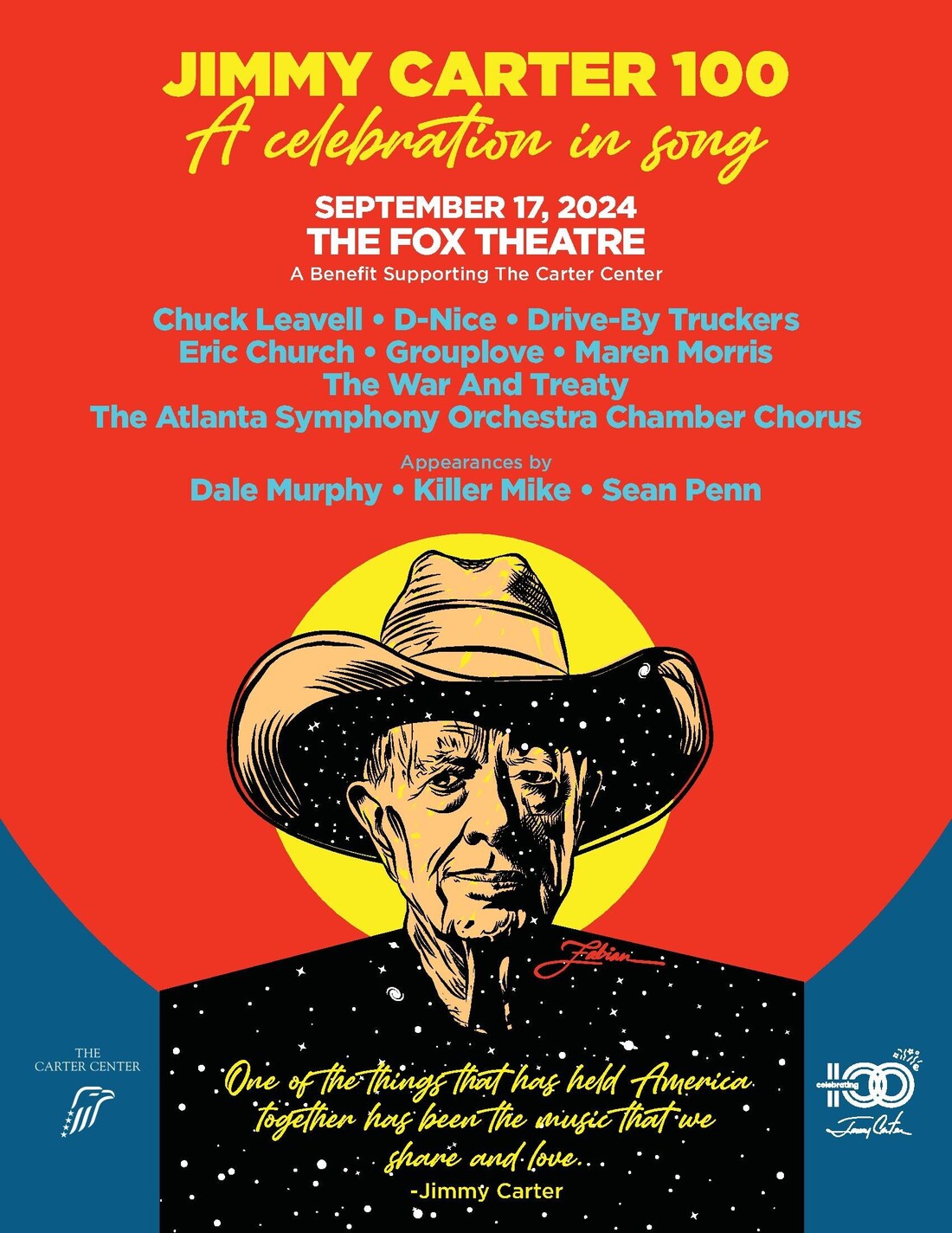 The Carter Center is excited to announce "Jimmy Carter 100: A Celebration in Song," a musical event celebrating the centennial birthday of former U.S. President Jimmy Carter. The landmark concert, taking place Sept. 17, 2024, at Atlanta's historic Fox Theatre, will feature world-renowned artists performing live tributes and special guests celebrating President Carter's legacy of service to humanity. Tickets are $100 — in honor of Carter's 100th birthday — and are available to the public at FoxTheatre.org/JimmyCarter100 starting at 10 a.m. Aug. 5.